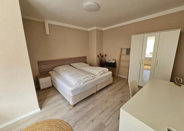 Apartmán Apartmán Wingertsgluck, který se nachází 10 minut jízdy autem do Hahnheimer Bruch, nabízí ubytování s Wi-Fi v celé budově. Apartmán nabízí pohovku, pracovní stůl a vysokorychlostní internet v pokojích, i terasu.